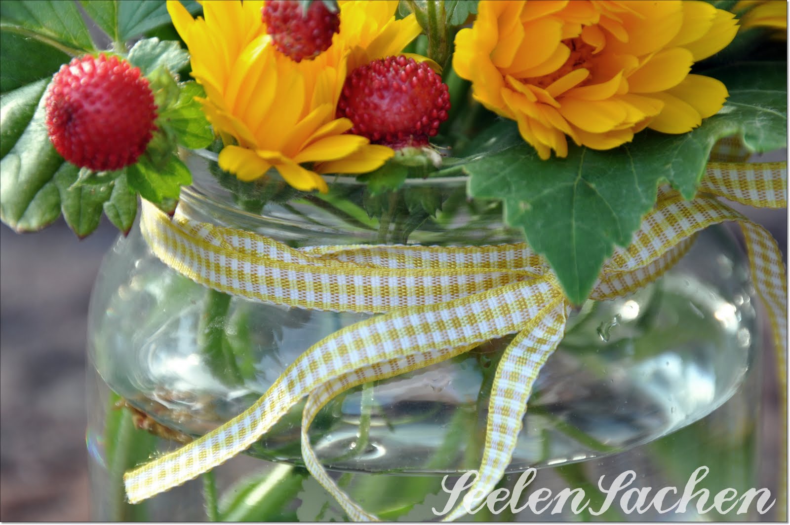 der blumenstrauß ist auch goldig, und da schau ich mir gleich die idee ab, die wilden erdbeeren zu “verwerten” – die wuchern bei mir im garten wie die weltmeister und bisher hab ich sie oft einfach weggeschmissen. im strauß sind sie aber viel besser aufgehoben 😉