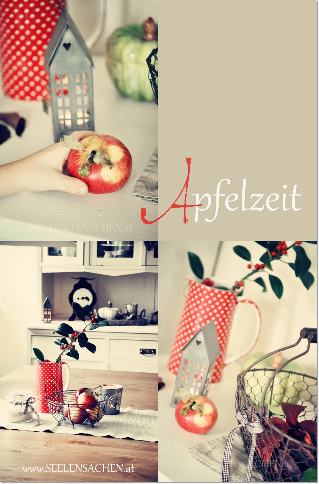 In den kommenden Tagen werde ich wohl noch den ein- oder anderen Kuchen daraus zaubern, vielleicht backe ich einmal wieder meinen Apfel-Streuselkuchen oder Apfelmuffins (für die Rezepte braucht ihr nur zu klicken…), für Weihnachten wäre auch wieder die Bratapfelmarmelade ein Hit, wobei: ich habe schon sooo viele Marmeladen im Keller lagern (und bei uns wird kaum welche gegessen…). Der Bratapfeleintrag war übrigens einer meiner allerersten Beiträge auf SeelenSachen – so witzig, wenn man wieder einmal Rückschau haltet und feststellen kann, wie und in welche Richtung man sich doch (weiter-)entwickelt hat! 🙂