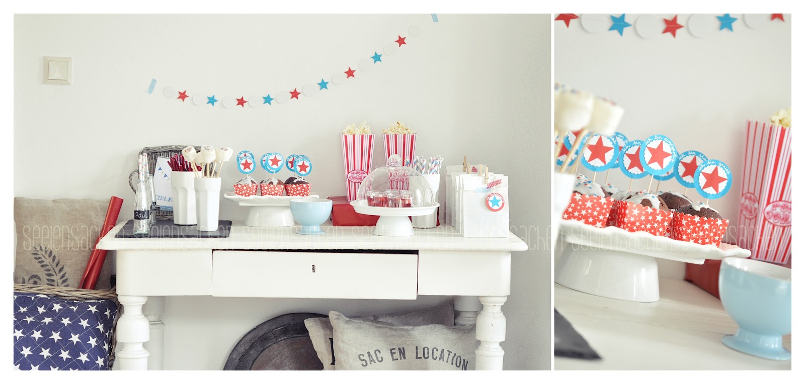 Nachdem die Burschen eine “Schnitzeljagd” durch den Ort gemacht hatten, waren sie natürlich sehr hungrig und müüüüde. Ich hatte schon Sandwiches vorbereitet und danach gab es Muffins, Marshmallowsticks (dafür einfach Marshmallows auf Spieße stecken und in z.B. Zitronenglasur oder Schokoglasur eintauchen und mit Streuseln – in unserem Fall Sterne – bestreuen) und auch das ein oder andere Gumminaschi (das darf halt nicht fehlen, beim “Großwerden”).
