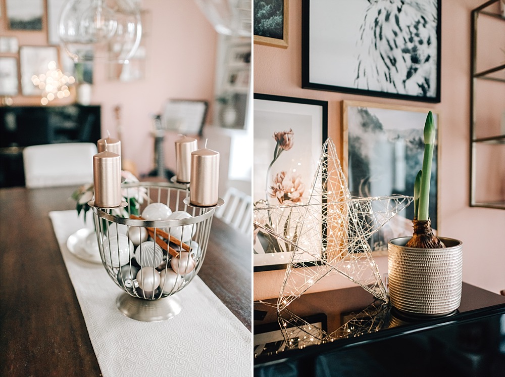 Ich muss sagen, dass mir die letzte Farbkombination in unserem derzeitigen Esszimmer sehr gut gefällt. Weiß, zartes Rosa (fast schon “fleischfarben”), Grau und Gold. Das sieht unglaublich edel aus, v.a. wenn Lichter ins Spiel kommen! Was meint ihr?