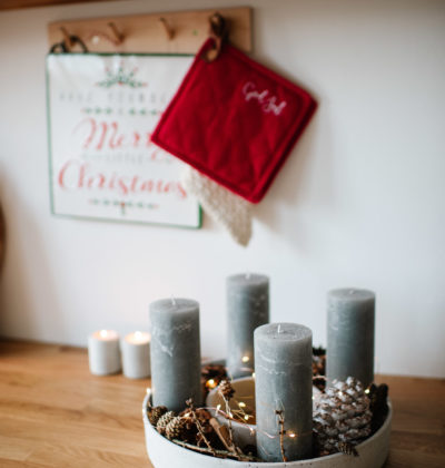 Zugegeben - ich war wieder mal sehr einfach und minimalistisch unterwegs, weil irgendwie für diese Dinge nicht so viel Zeit bleibt oder ich es einfach auch gerne schlicht habe. Aus den Vorjahren wisst ihr schon: ich bin kein großer Fan von traditionellen, grün gebundenen Kränzen. Sie vertrocknen so schnell, rieseln dann und sehen nicht mehr so schön aus, ich hab auch immer Angst, dass sie in Flammen aufgehen, darum setze ich seit Jahren immer wieder andere Ideen um. Hier und hier und hier und hier könnt ihr ein paar Beispiele aus den Vorjahren sehen. Dieses Jahr ist er wieder im Betonring (der gar nicht aus Beton ist, dafür ist er viel zu leicht ;) ...), ich habe mit Naturmaterialien ...